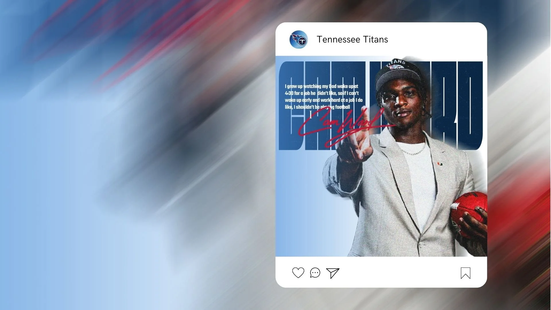 This passion project on Cam Ward explores a conceptual sports campaign built around leadership, confidence, and future franchise energy. I combined editorial-style portraits, action photography, and bold typographic treatments to simulate a professional NFL rollout across multiple platforms. This was a self-initiated creative exploration, and none of the photography used in the project was taken by me.